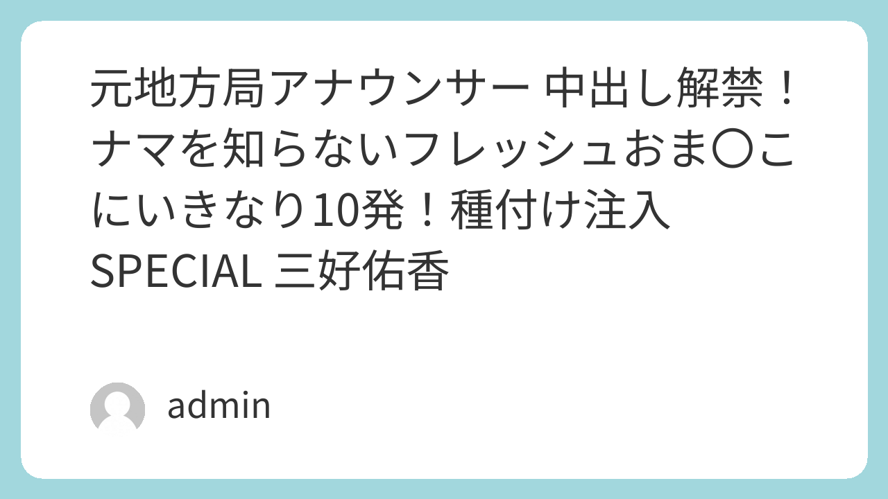 【女子アナ専属・三好佑香が人生初の中出し解禁】期待と緊張が入り混じる長身お姉さん!直接粘膜お触り未体験の美マンにギンギン生チンポを挿入!一回ゴムありSEXもしてみたけど、やっぱりナマの感触忘れられず自ら生チンハメ!初めての中出しホカホカ精子を観察!続けて親父と濃厚ベロキスで感度グイ上がりした子宮にねっちょり中出し性交!さらには底辺男たちが集まってヒクつくマンコに大量ぶっかけ!最後は徹底的に孕ます子袋ガン突き3Pファック!いきなり計12発の大量精子を注入!新卒女子アナが生チンポに速攻ドハマりして寿退社するほどの種付けSPECIAL!